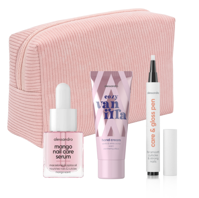 De mini Vanilla handcrème verzorgt en hydrateert de handen intensief en laat een warme, zoete vanillegeur achter. Het Mango Nail Care Serum voedt en herstelt nagels en nagelriemen, zodat ze er gezond en sterk uitzien. De Gloss & Care Set geeft je nagels een prachtige glans en extra verzorging voor een frisse, verzorgde uitstraling.